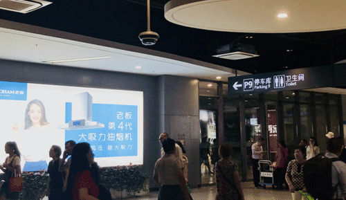 2.右转会看到老板电器广告牌,舒淇代言或P9停车库标识;