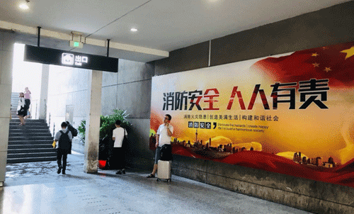 3.左转后看到出口标识,直走上楼梯;
