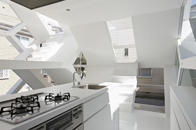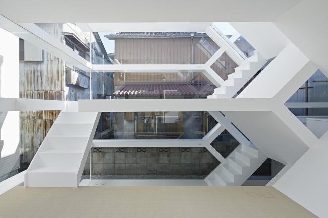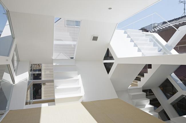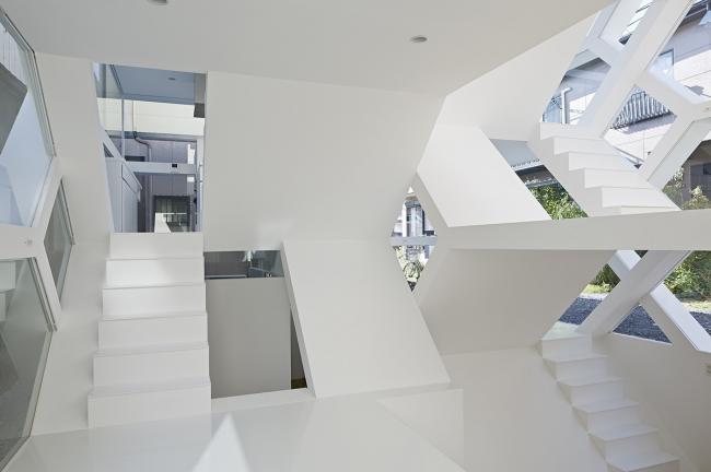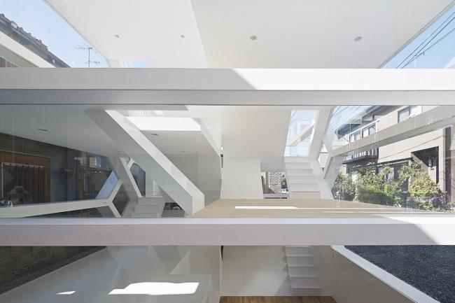 S-House是建在日本埼玉县大宫站附近一个居住区里的小房子。在一个不到100平方米的场地上,建筑师将住宅分成两部分,空间上以错层的方式进行组织。在立面上看来,两个部分每层都与相邻的一层交错相连,形成一个复杂的空间体系。