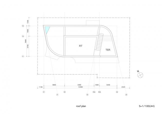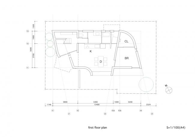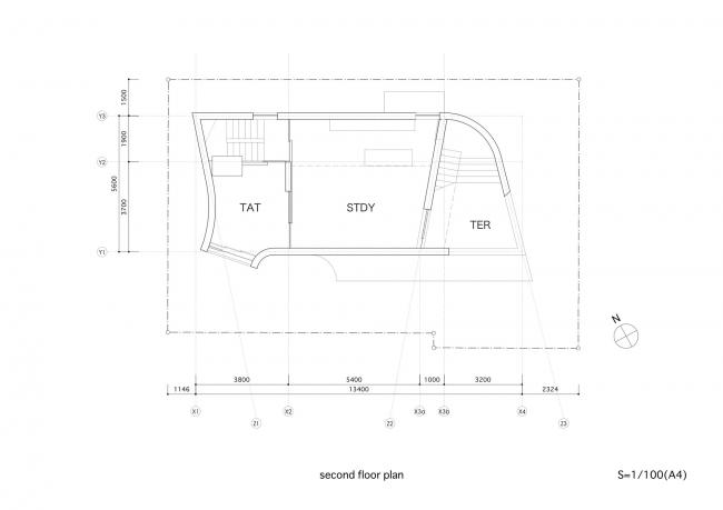 这座住宅位于多摩川水渠附近,(BIM学习)在这里还有一些武藏野的依存。低层住宅统治了周边区域,沿着西南侧大面积高密度的林地,一排沿着水渠的树木的北侧被切去。由于户主非常喜欢观星,所以我们在屋顶划定出一块安全区域放置望远镜,并且尽可能地将其与后面界墙传来的灯光所分离。