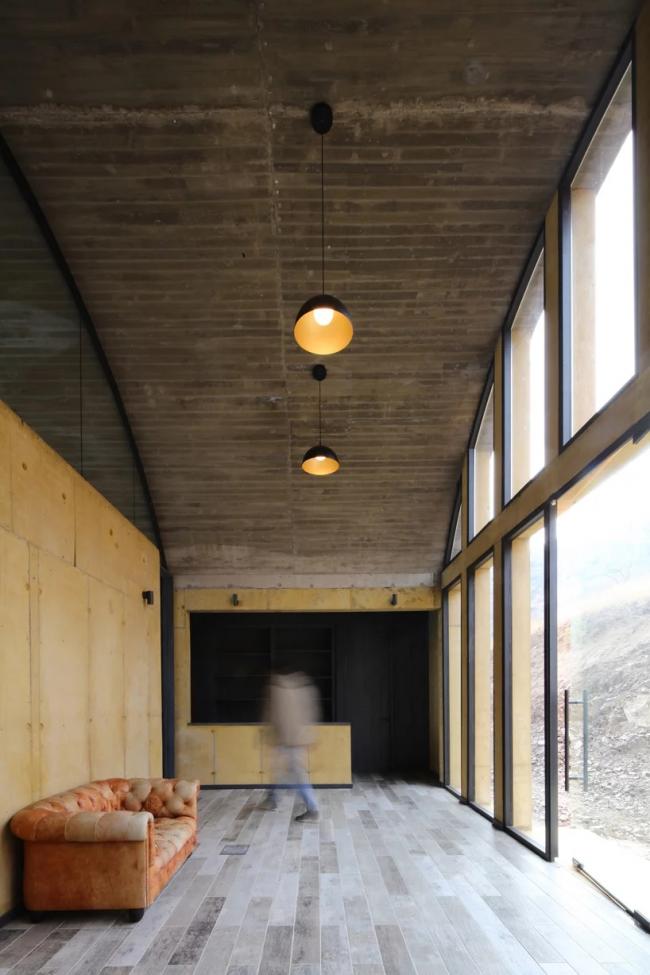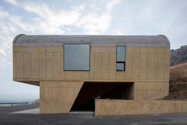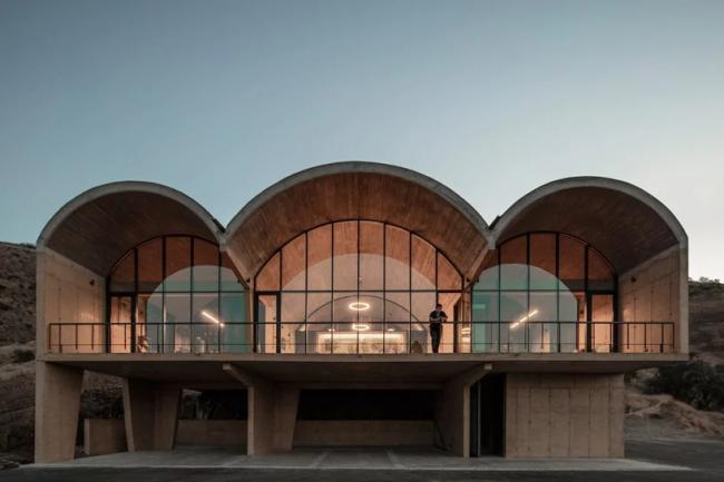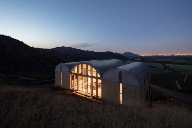 MAPAA 建筑事务所完成了一个家族办公楼项目——OFMA,它是一个父亲和其儿子的办公楼。项目坐落于圣提亚哥市南边麦波河谷的山坡上,那里具有大面积葡萄园和橄榄园,并以葡萄酒生产而著称。设计从酿酒工艺和储藏室出发,整体采用由三个钢筋混凝土拱顶组成的系统。