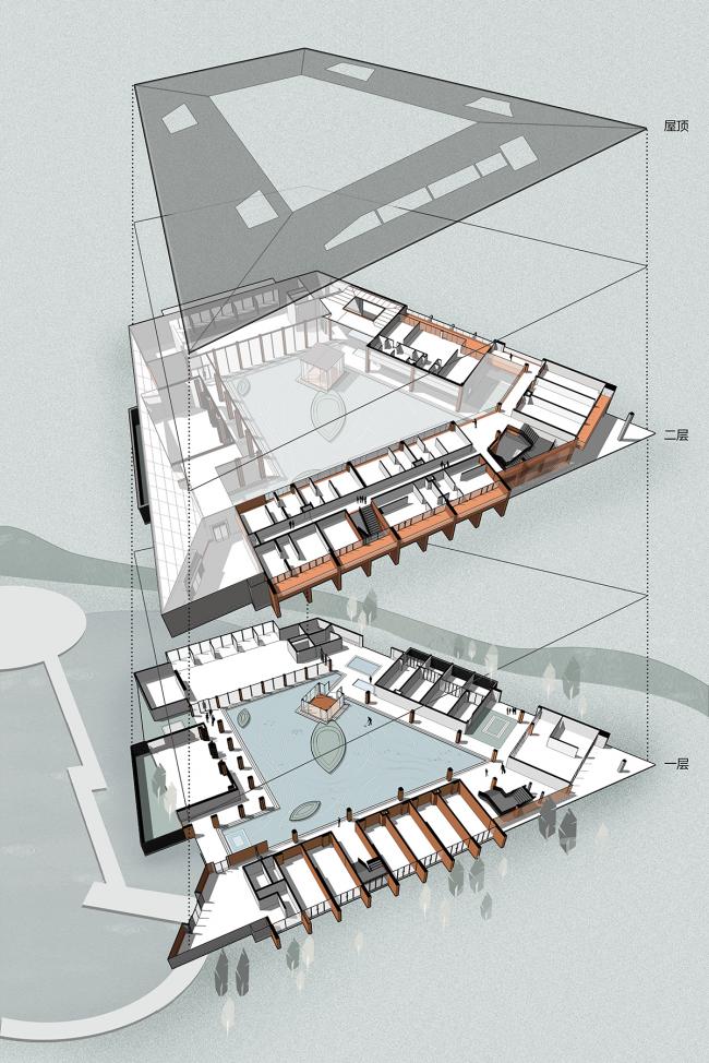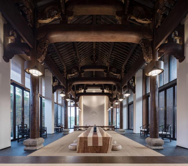 建筑给予场所、使用者去定义功能。正清和雅禅院,取自于中国禅和茶的文化,空间的创作在高度、广度上给予足够的尺度,将自然山水人文穿插进建筑,而放松生活状态的停留或是感悟禅理哲学的升华,则交由不同的使用者去体验,小镇的意义也正在于此。