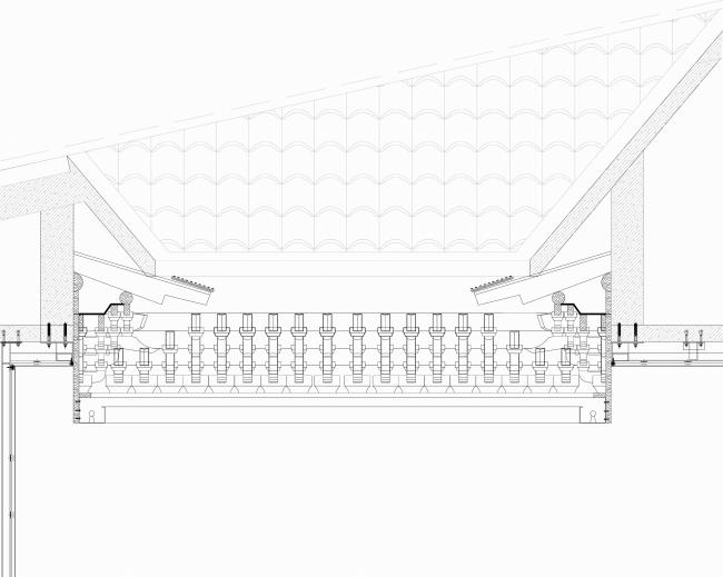 建筑的屋顶是一个回旋向上的坡屋面,最高点定义在场地的东南角,同时也解决了局部两层的功能设定。