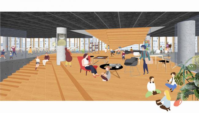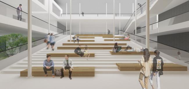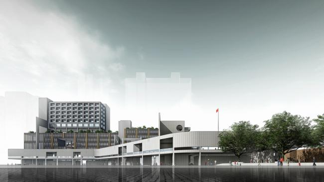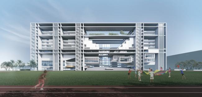 1961年,Joan Littlewood 和建筑师Cedric Price最早提出了关于Fun Palace的设想——一个人们可以聚在一起享受艺术、科学和文化的空间,一个学习乐园的模型。基于桂园中学“最宽裕”的用地条件、高密度城市背景和合理解决校园可拓展性问题,我们在桂园中学改扩建项目中建立了一个立体多元的教学综合体,描绘了一个多维度多样化校园的垂直风景。