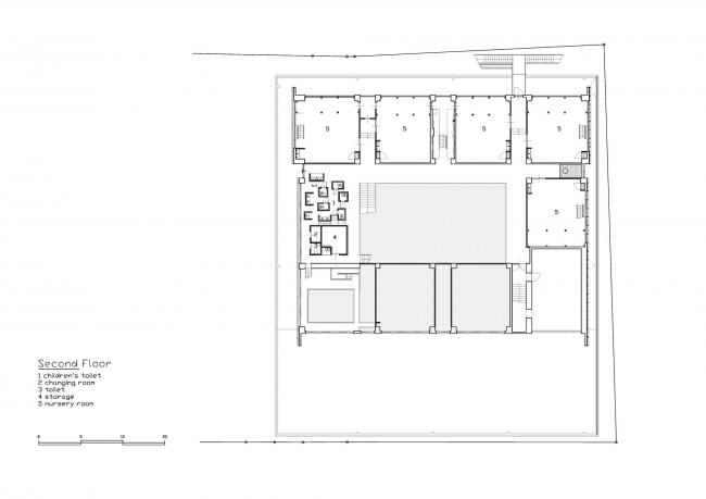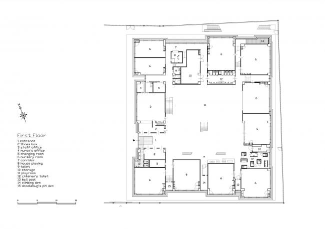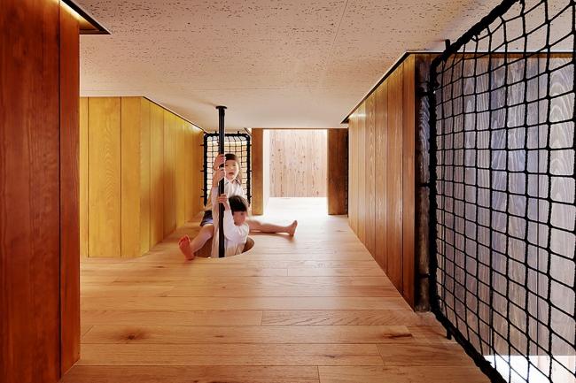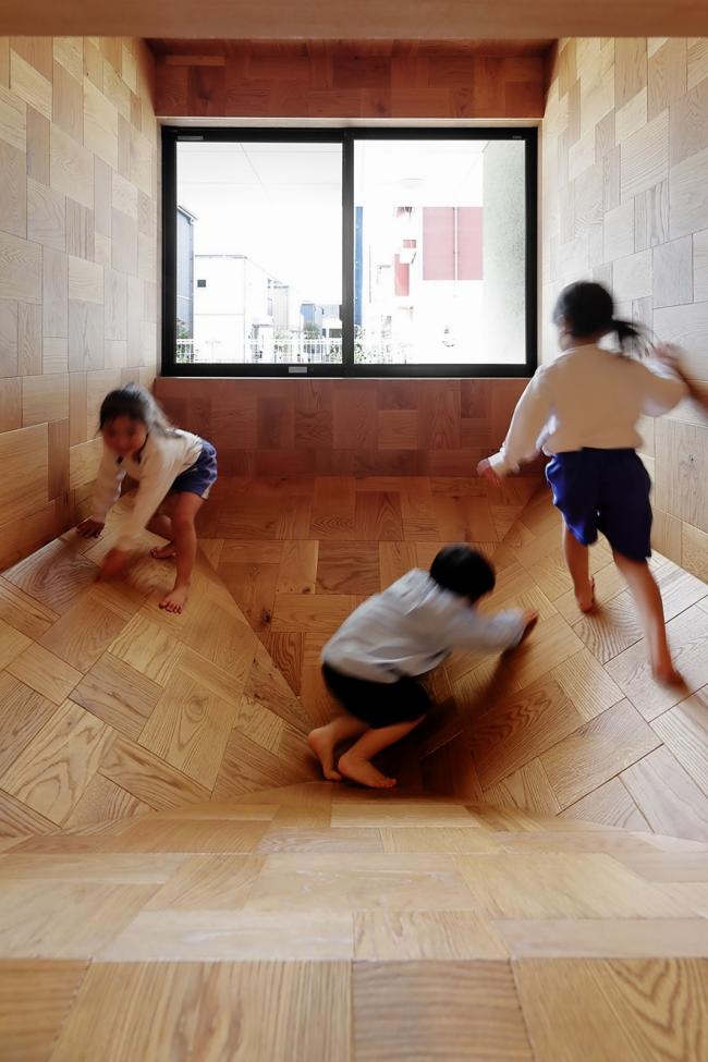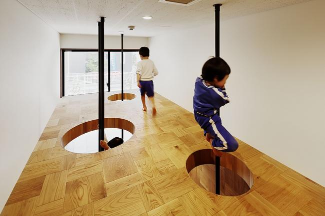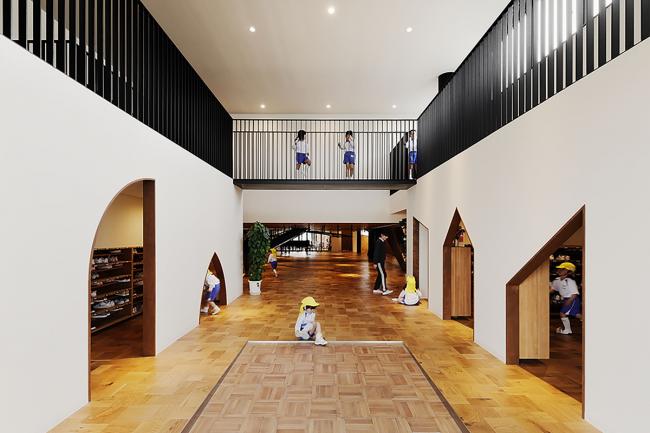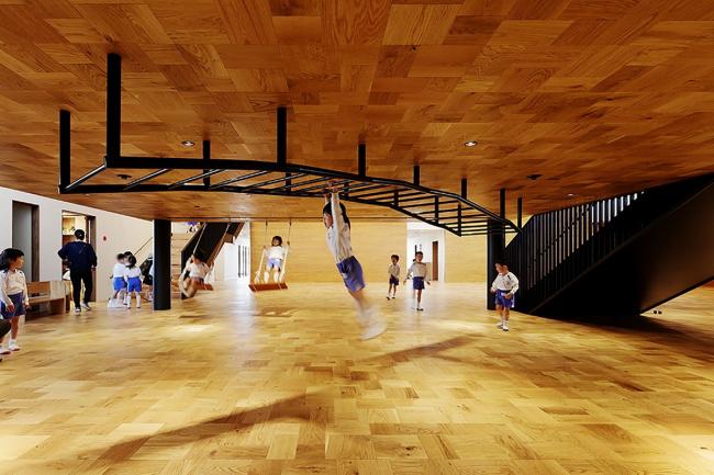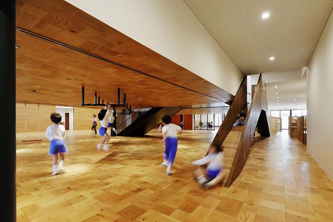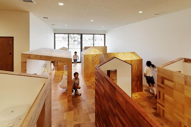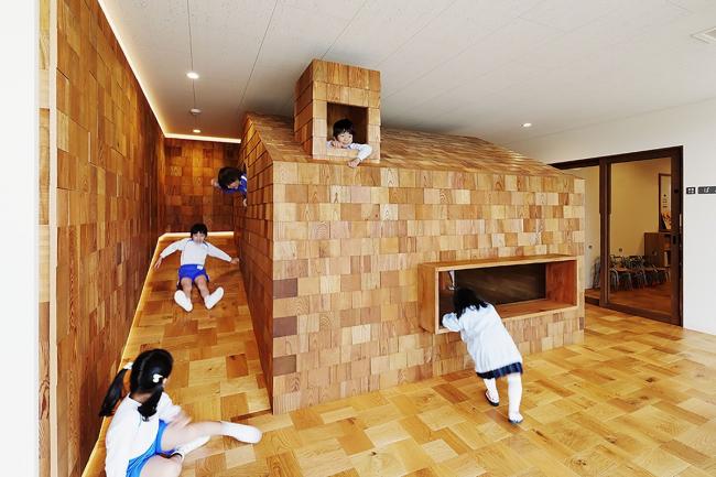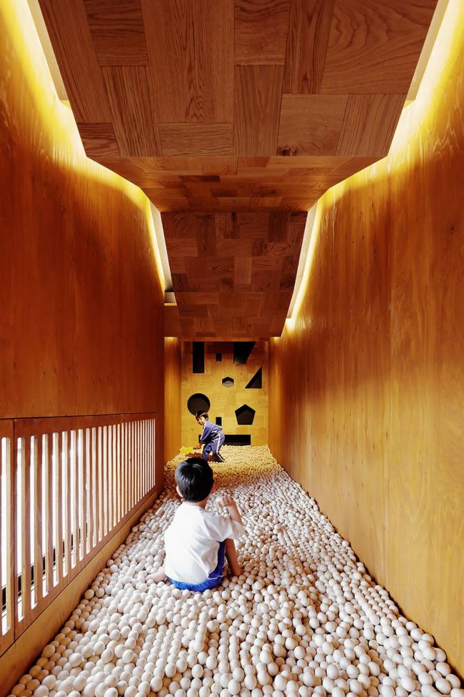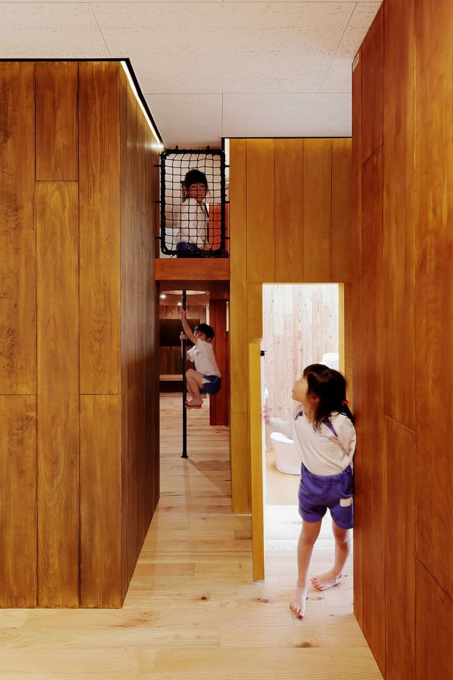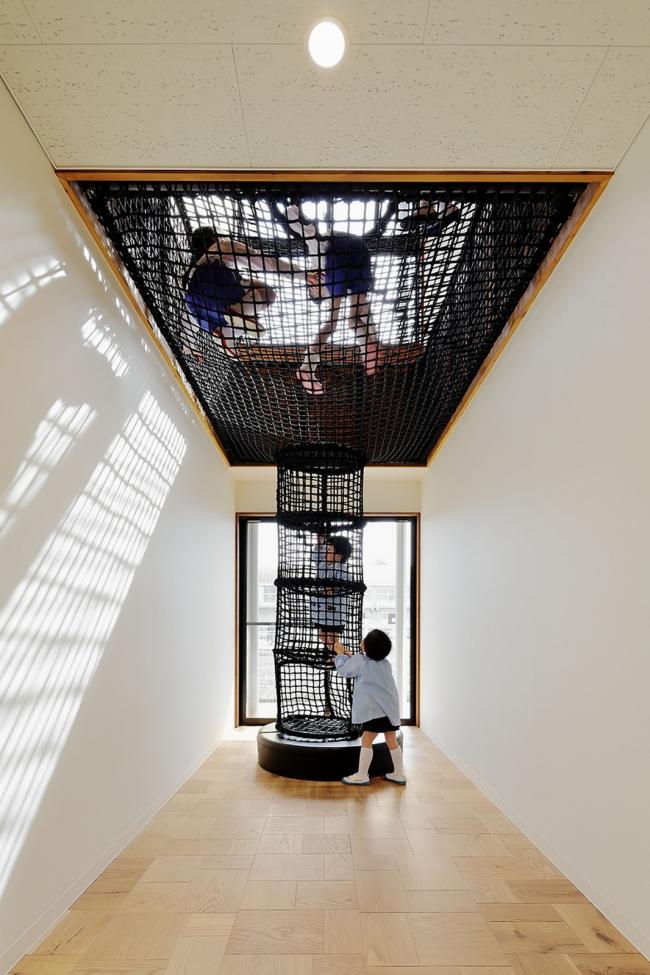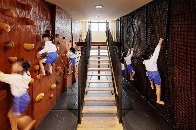 该方案通过将员工办公室、托儿所等各个房间横向和纵向移动,创造出自由空间,使14种独特的游戏空间看起来像一条街道,成为孩子们过去玩耍的地方风景。山梨县大学教育学教授中村和彦表示,儿童应该学会36种身体动作,如“跑”、“跳”、“堆(BIM设计)”、“抱”等。这36个动作都可以在这14个游戏空间中被学习到。