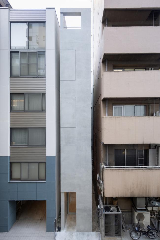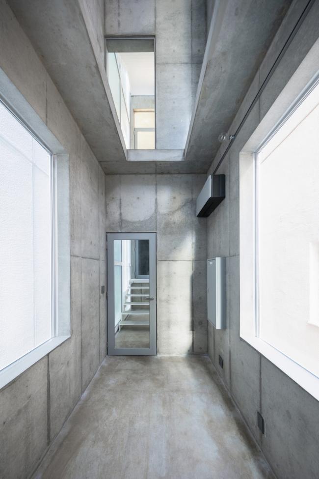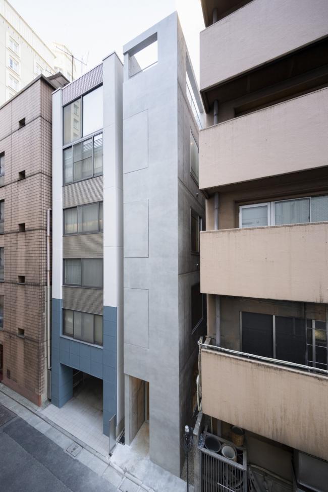 由于其瘦高的比例以及日本的地震隐患,前面的建筑物配以1.2米厚的亚光楼板使其平衡。加上由2.4米厚墙环绕的屋顶阳台,这无形中增加了其瘦高的形态,并使得整栋楼呈现出很少见的1:7.(BIM学习)7比例。