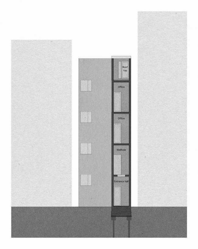 无数条小巷从银座的大街上生长蔓延,它们与人们对这片区域的通常印象,即那些透明建筑立面和时尚设计大为不同。小巷中主要由那些笨重而乏味的建筑构成。我们的选址正是其中之一,在这样一个拥挤区域的中间,我们想要创造一个像钟楼一样让人们可以仰望的标志性建筑物。