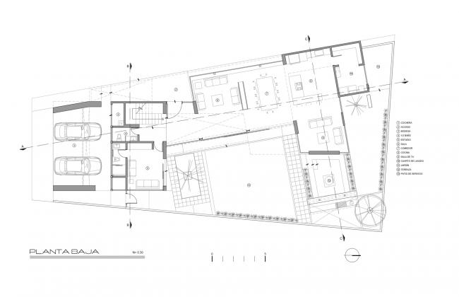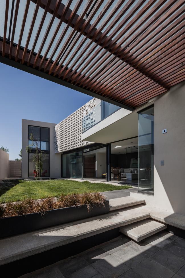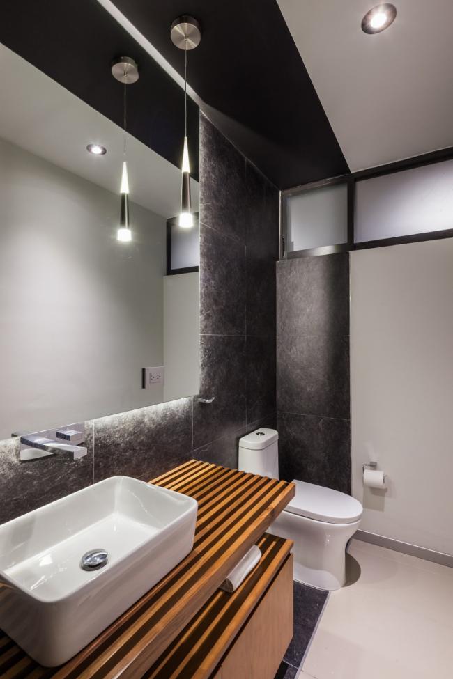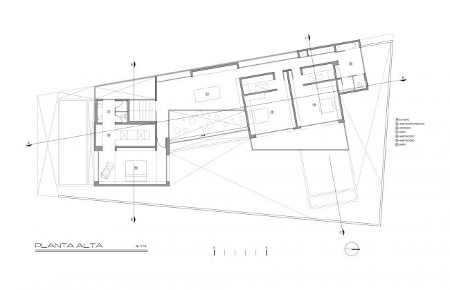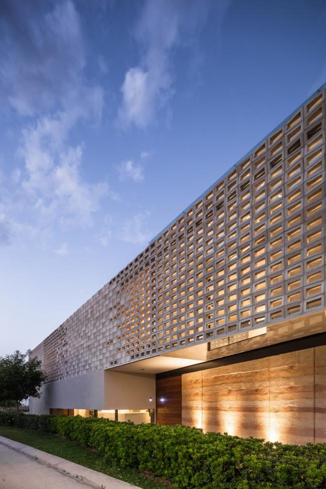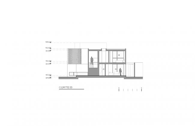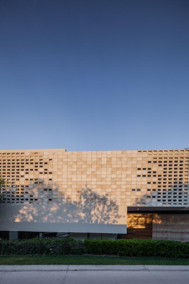 空间中的人造光源无疑是各个空间的核心要点,它们为在空间中设计不同环境提供了可能。LED灯的使用是一个节能方案,出于同样的理由,目前所有空间中的自然光也都是直接的,可控的,功能性的。一种特殊模数的格栅在现场被制造出来,使得室内得以观赏日落的景观并且控制西立面内部的太阳角度。更深一步来说,它形成了帆布网状光线,灵巧地穿透了房屋中的动态空间。