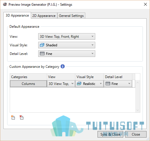 选择您自己的默认外观设置和 Revit 类别特定设置。