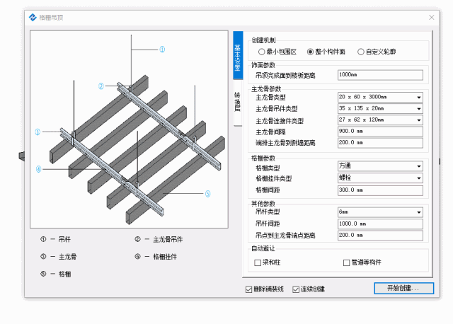 格栅吊顶用的地方也是非常广泛。本软件也已支持一键生成。