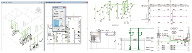 我们按照《建筑给水排水制图标准》重新完成了立管标注、管径标注、标高标注、坡度标注、入户管号标注、管上文字等功能,上百种标注样式在我们软件里不一而足,能够满足各家设计院的出图要求。软件当中热用水量计算、管线综合自动标注、集水坑剖面图自动标注、管道保温层的计算及添加、喷淋、消火栓支持自建族入库、喷淋间距标注等等一系列新功能的推出及其预览效果的添加,让给排水设计工作更加便捷、智慧,大大提高了设计师的设计效率。