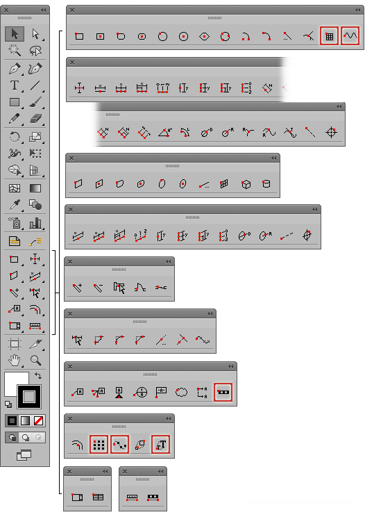 CADtools 在 Adobe Illustrator 工具面板中添加了 10 个工具组中的 92 个绘图,编辑,标注,尺寸标注,转换,创建和实用工具。