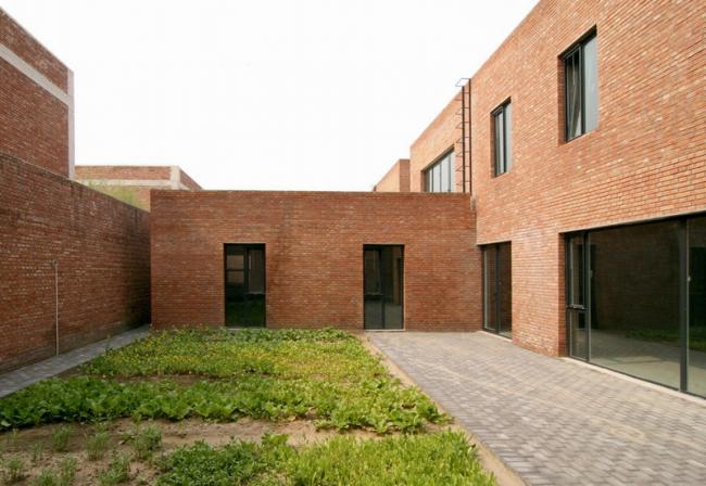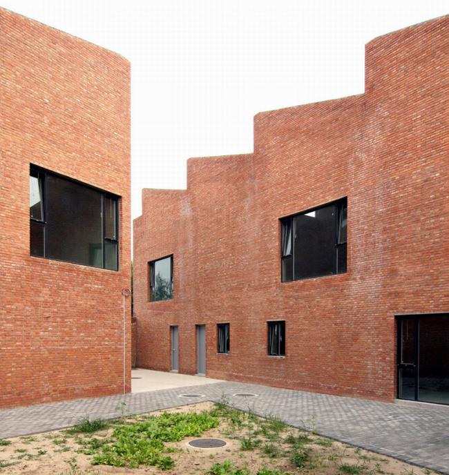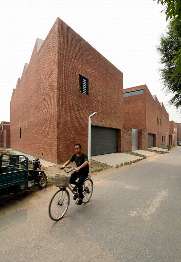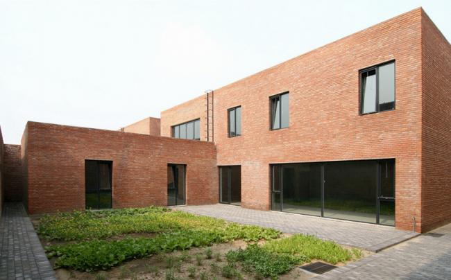 两位著名的中国画家决定搬到北京郊区的宋庄艺术村生活和工作,这里不但环境清幽,而且左邻右舍也都是艺术家同行。工作室的设计在外观或施工原则等方面有别于传统的中国四合院,而更多地考虑了四合院的空间性能方面,即住所(以房屋结构与形体隔绝室外空间)、内向性(所有开口都向内开放,而不是面向街道)、隐私程度(隐私程度随着院落的深入而递增)以及方位(主要生活空间都为南向)。这些方面经过设计师周到的考虑,转化为一种建筑范例,将三对不同的并列元素调和在一起:内部与外部、工作与生活、个人与集体。