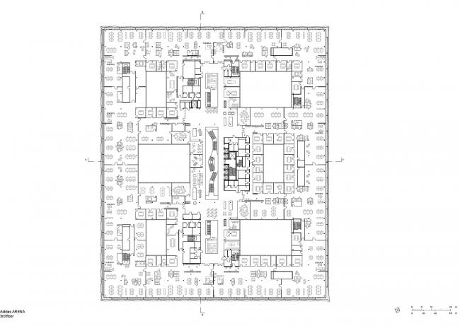 阿迪达斯在德国 Herzogenaurach 新落成的办公大楼和接待园区,在成为当地地标的同时,还旨在为来访者展现一个独属于阿迪达斯的体育世界。新落成的办公接待大楼,在具备功能性的同时,极具雕塑感的外形还会给人以强烈的视觉冲击力,以传达品牌本身对体育运动的热爱和激情。建筑师以有机灵活的办公空间为设计目标,在 52000 平方米的建筑面积内,设计了近 2000 个现代且可持续的工作空间。