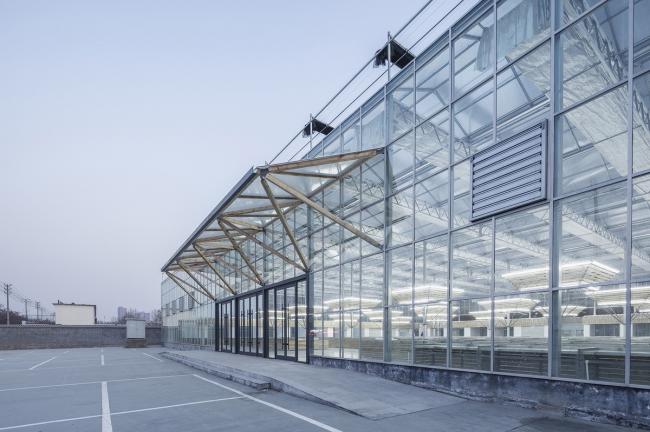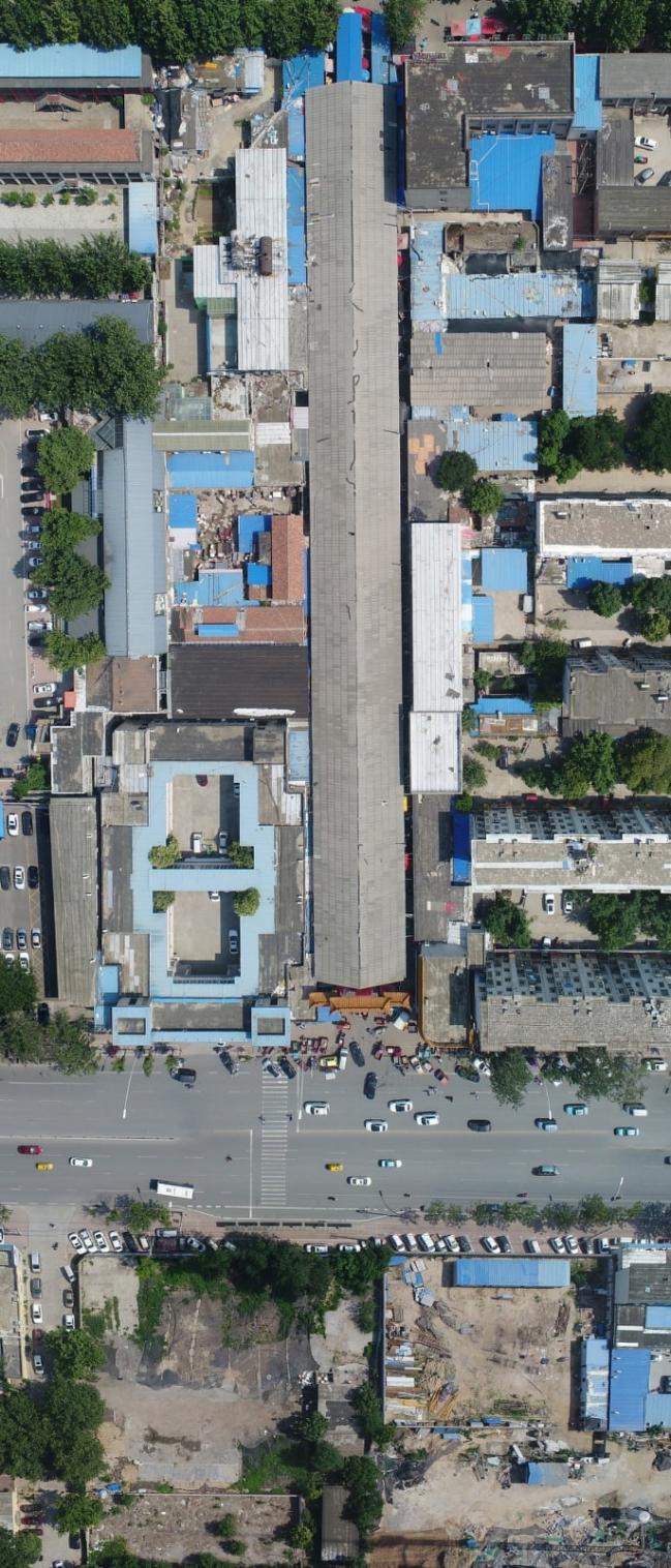 临时市场,甲方的诉求:建造足够快速,造价尽量低廉。作为设计师,则希望兼顾建造的可持续性,临时使用期满,依然可以进行功能的转换和再回收利用。一种低造价、快速的、空间满足多重使用的建造状态在设计推导中被叠加考量,“方形”平面也是前置条件之一。充分工业化、超级标准套件的蔬菜大棚方式第一时间被纳入实施优选方案。它的建造部件是模块化、轻量化、装配性的,可快速建造,通过低成本而获得相对大空间,还可拆除异地建设,杆件是标准件可以回收再用。