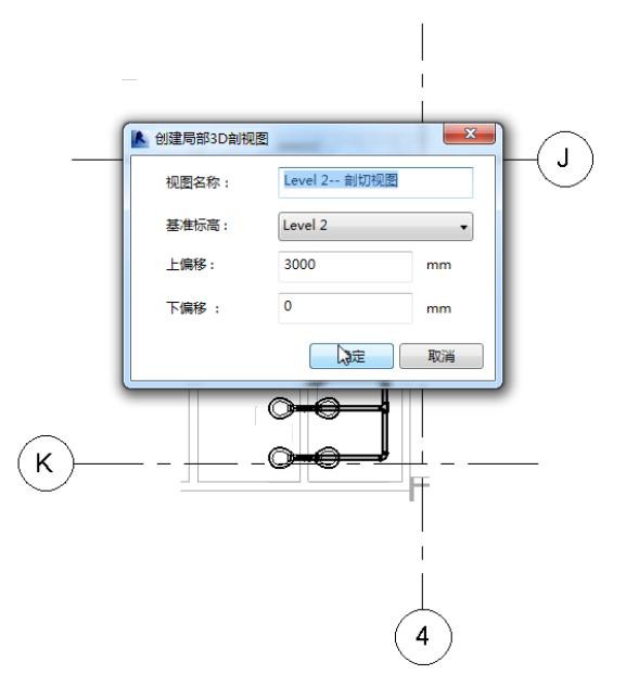 选择一个楼层平面,点击”局部视图”,在弹出的”创建局部 3D 剖视图”对话框中,为创建的视图输入名称,输入偏移值(如输入向上偏移值,就是在所选标高到”上偏移”间创建局部剖切框),点击”确定”按钮。