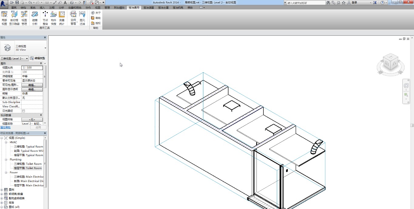 在”宝冶通用”选项卡下的”通用工具”区域选择点击”局部视图”。