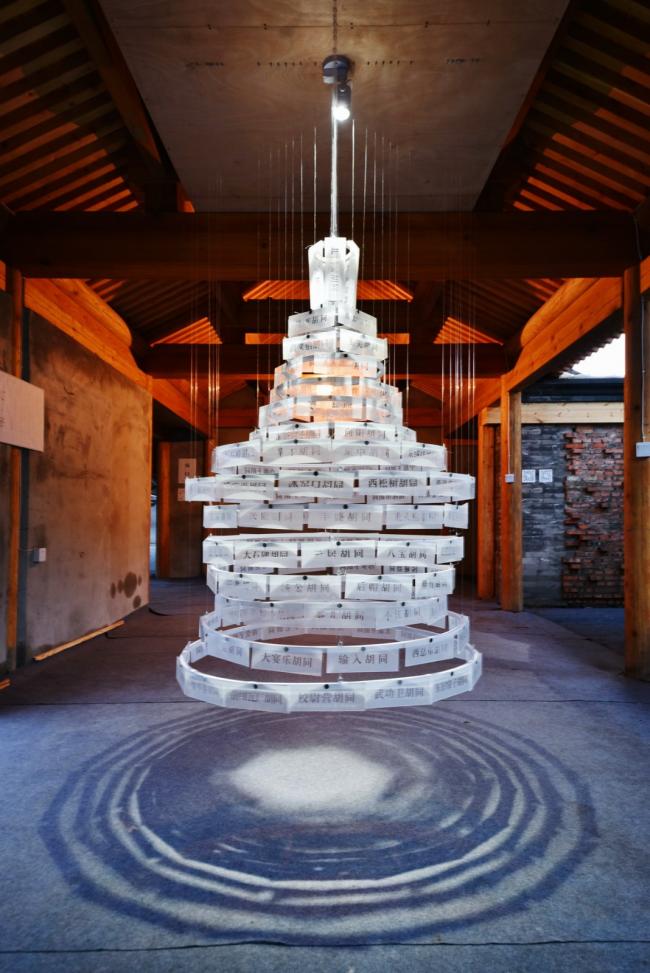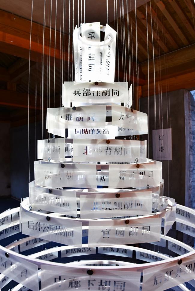 “灯 • 塔”以照明为切入点,胡同名称为设计产品,展示老北京各具特色的胡同名称,并将设计产品围合成白塔形象装置,以引发人们对胡同照明的关注和对提高胡同舒适度的思考。