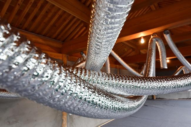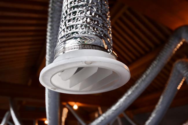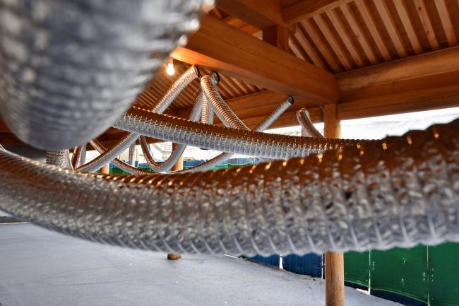 “外墙风口”对风口进行现状观察,旨在建议有针对性地提供适用于胡同风貌的功能产品,展览形式以产品实物为主,采用风管与风帽组合成装置进行展出。
