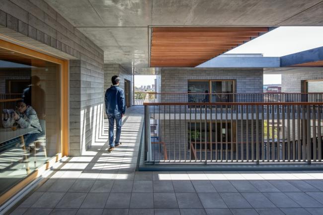 我们围绕着庭院周围布置建筑,并在中间建立了一个名为“公共场所”的开放空间,它将把光(BIM教程)和风引入公共空间,成为居民进行交流的第二客厅。我们在那里里打造了成两个小型私人房间和一个共享厨房,人们可以在共享厨房里做饭和吃饭,共享厨房可以通过一扇大的滑动木门向公共空间打开。