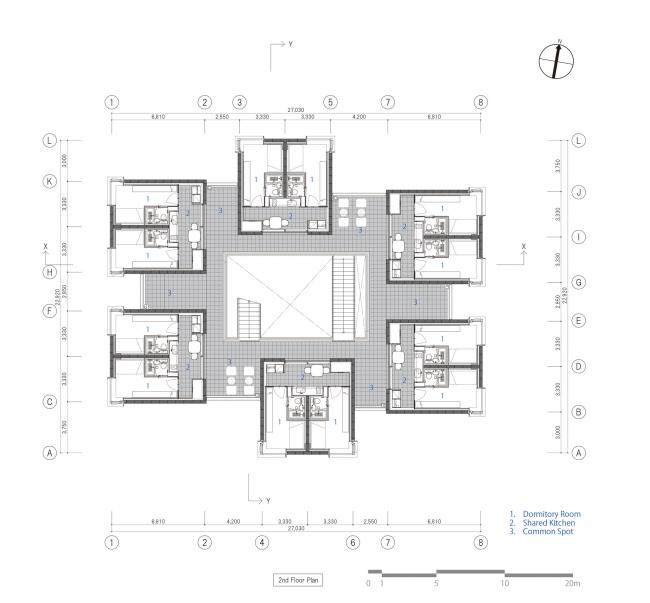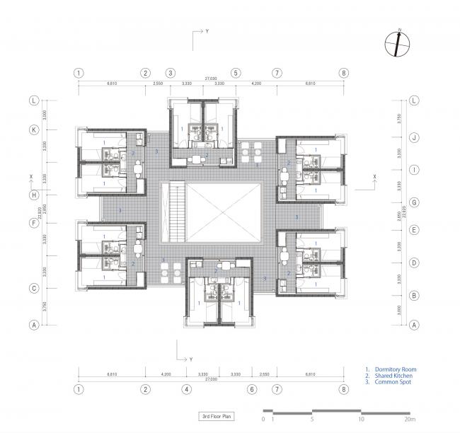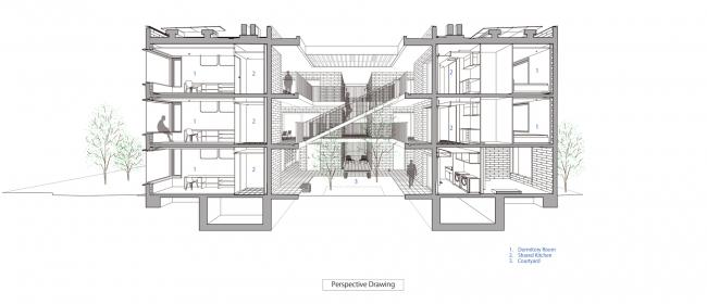 他们可以与朋友在共享空间分享他们在共享厨房制作的菜肴。共享厨房将建立人与人之间的联系,社区将在此形成。公寓有多种空间类型,包括独立的房间、开放公共空间等。我们希望建筑能让每个居民选择一处他们觉得舒适的空间,并与其他人保持各种各样的关系。