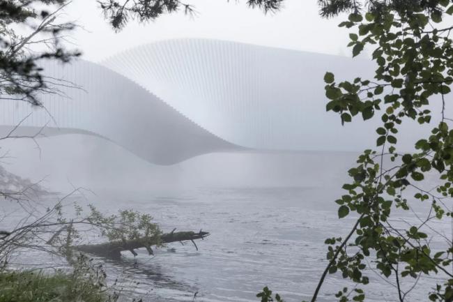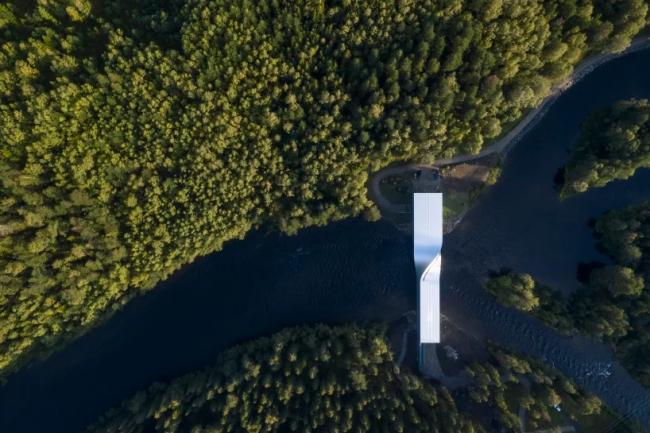 横跨蜿蜒的Randselva河,一座独特的新建筑连接着北欧最大的雕塑公园Kistefos内森林茂密的河两岸。一部分是博物馆,一部分是桥梁,一部分是雕塑,“扭体”由BIG设计,这是该公司在挪威的第一个项目。通过在中心的显著扭转,这座建筑不仅使游客可以从一个河岸穿越到另一个河岸,还可以用来举办国际性的当代艺术展览。