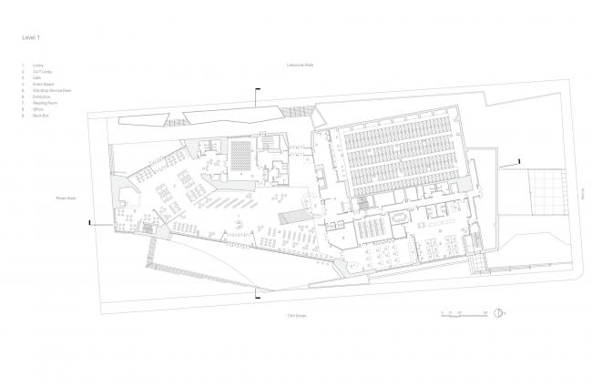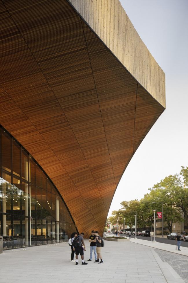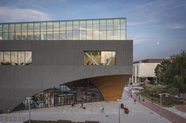 该项目位于两条主步行道Polett Walk和Liacouras Walk的交汇处,以及坦普尔大学主校区的连接处,为该校3.9万多名的学生群体奠定了一个新的社交和学术中心。建筑融入费城北部的建筑肌理,离城市的交通动脉Broad Street只有一个街区。在其充满活力的城市背景下,Snøhetta与Stantec合作设计的图书馆,对传统类型里研究型图书馆作为书籍储存库的功能进行了重新诠释,将建筑整合为一个多样化的协作与社交型学习空间。与上世纪60年代的前身佩利图书馆相比,这座占地22万平方英尺的图书馆提供了两倍多的学习空间,预计每年接待游客将超过500万人次。通过将大量的学术资源、学科和尖端技术集中在一个屋檐下,查尔斯图书馆承载着坦普尔大学的进步使命,即为学生、教师和周围社区提供公平的学习体验。