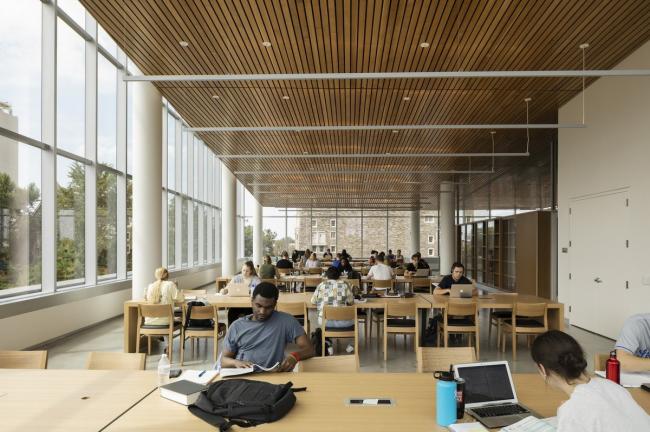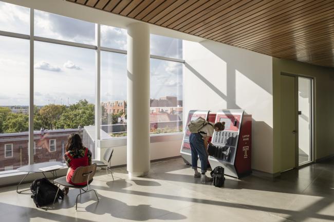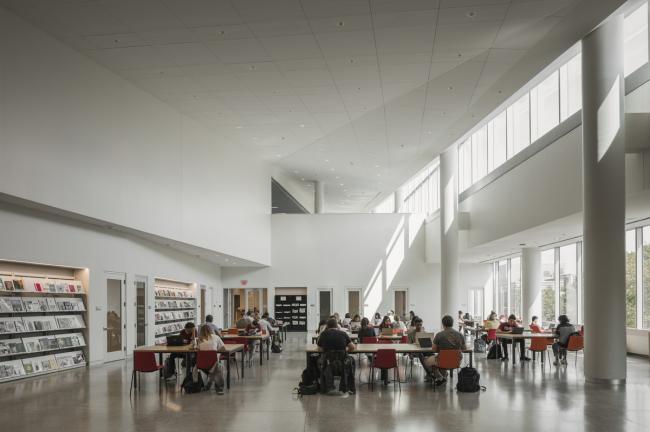 为此,在满足对增加座位的需求的同时,图书馆的设计将多种合作伙伴项目和学术资源安排在了一个共享的屋檐下。固定在二楼和三楼的是提供写作和辅导支持的学生成功中心;提供数字制作和沉浸式技术的Loretta C.Duckworth学者工作室;以及坦普尔大学出版社。查尔斯图书馆还致力于完全的移动技术战略,在每一层楼都提供笔记本电脑和收费银行,反过来,随着学生技术需求的不断提高,这又解放了受传统台式机限制的工作空间。散布在整个建筑的40多个会议室和学习空间都是可预订的。在欢迎来自各系的学生,提供尖端技术通道和校园中心区域各种各样的学习空间的同时,这些资源将比以往任何时候都更容易为学生提供。