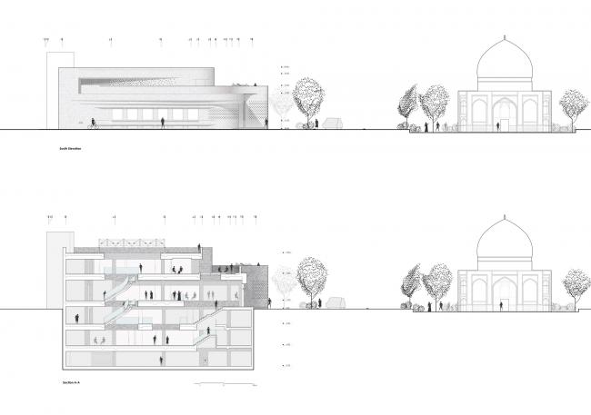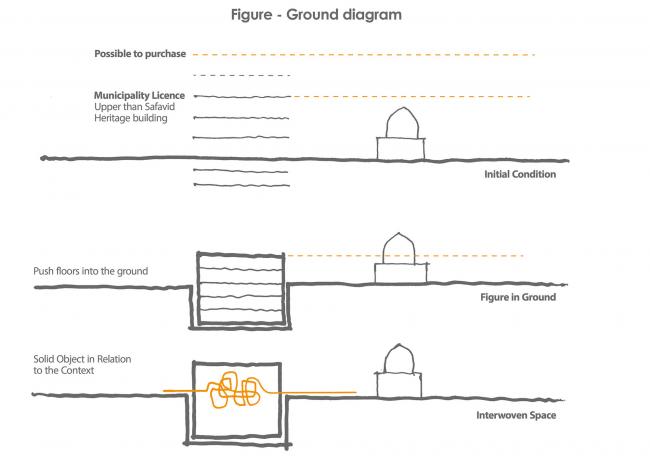 另一方面,由于客户对土地的商业要求,以及他们预期的最大利益,客户对建筑性质的期望与周围环境,特别是Gonbad-e-Sabz之间存在着严重的意见分歧。如果不进行对话,这些分歧只会造成不利的经济损失。因此,设计该建筑的一个主要问题是如何使该场所与日益关注的环境和背景之间的对话成为可能,使其在满足商业功能的同时也能融入文化精神。