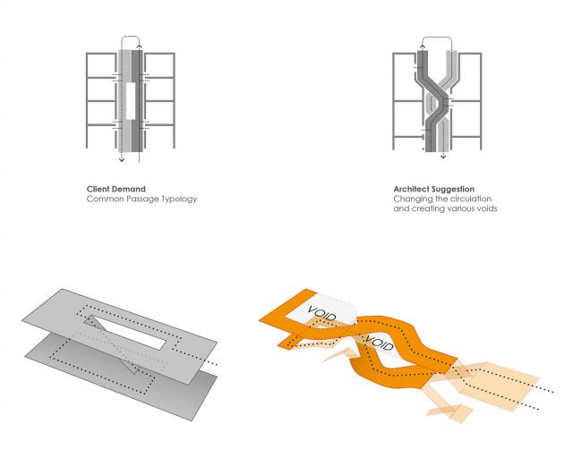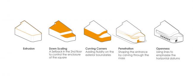 由于市政府允许建造三层楼,我们甚至可以按照规定再建额外的两层楼。我们不仅拒绝在这一敏感地区建造一座比Gonbad-e-Sabz高的三层商业楼,还改变了对官方规定的态度,使得建筑比最高限低了一层楼。为了实现客户的需求和规模控制,考虑到建筑体量和地面的关系,我们将建筑嵌入地面。