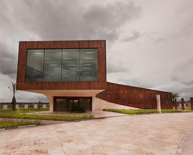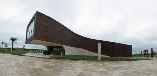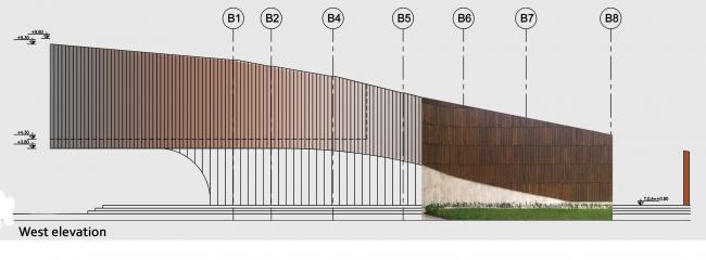 该建筑是由东西两面红墙组成主要框架,巨大的栈桥随着弯曲的曲线移动,9米长的悬臂高高地悬在建筑的一端,看上去不禁让人为之感叹!入(BIM)口处即悬臂下方的两堵拱墙就像是将上面的结构托起来一样,让建筑从地面升起直冲蓝天,又像是张开双臂拥抱蓝天一般。屋顶也不是死板的平坦,而是被分成三个不同的坡度层次,在天际线处显得既柔和又坚定。