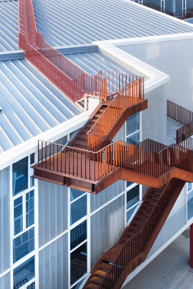 ▲ 外置的耐候钢板疏散楼梯 ©存在建筑-建筑摄影