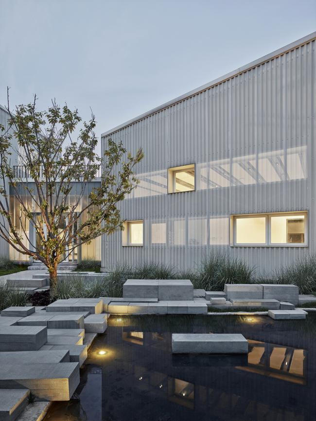 ▲ 清冷——早晨的中心庭院和生活服务中心©存在建筑-建筑摄影