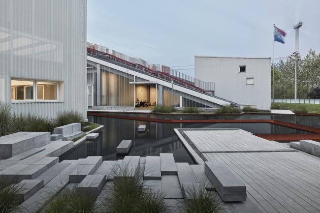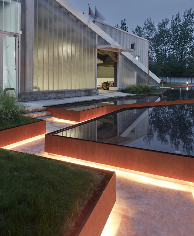 景观的设计同样与建筑概念一脉相承,用简洁抽象的形式来传达山水精神。