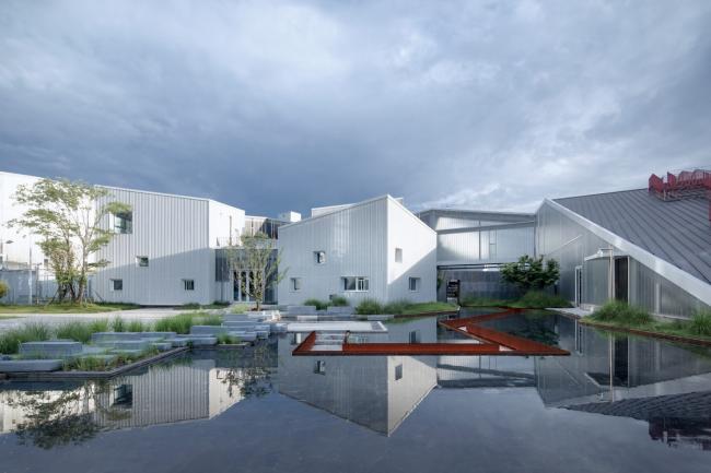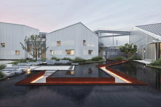 究问山水文化,运用创新材料,我们重新定义生产村落,重构山水画意境,赋活新的生产空间,将山水对话关系在园中解读。对于工人而言,这里不止现代乏味的流水线工作,而是一个劳动时尽情挥洒汗水,闲暇时饱含自然召唤和有趣生活的口袋式山水景观。