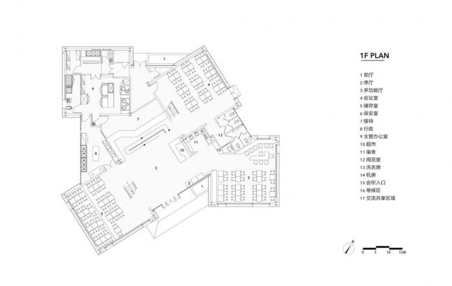 建筑、景观、室内一体化的设计模式是我们一贯的理念,也贯穿了本项目的设计始终。line+设计师在介入项目后,延续了原有的建筑空间理念,并进一步结合园区的使用模式和具体要求,展开了针对性的建筑空间改造和室内重构。