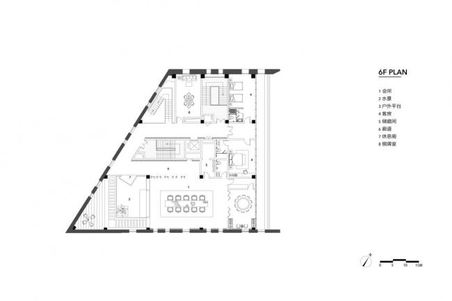 平面设计打破原有的楼板结构,形成室内外空间相互穿插,相互贯通的灰空间,用现代的设计手法演绎半屋半院、半石半林的传统民居布局。