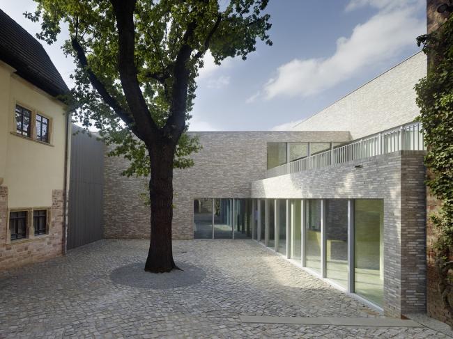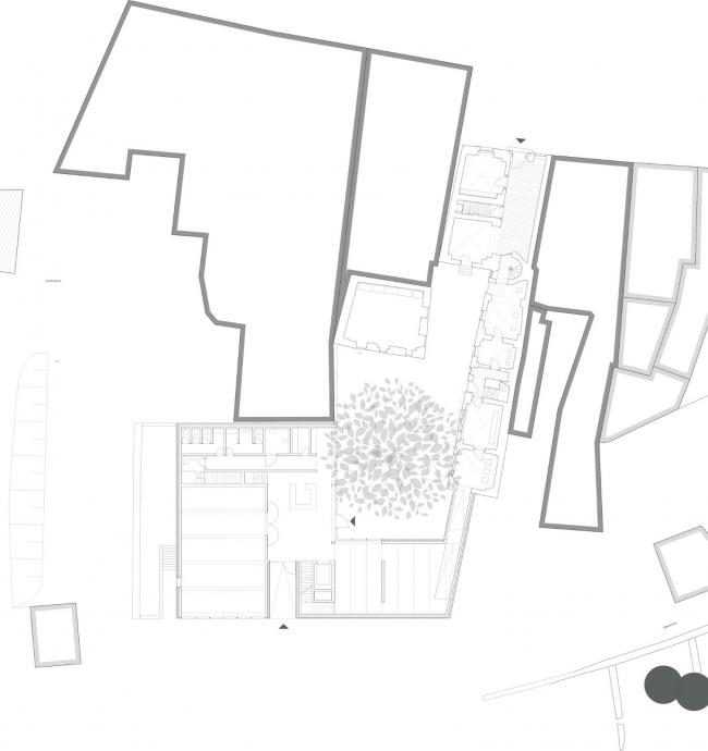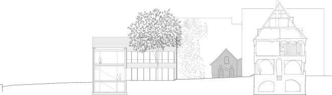 因其清晰明了的体量和结构,与原建筑相连接/承接的新建部分展现出了相当的独立性与现代感。尽管如此,新建部分在建造环境上仍受到原建筑极大的影响,例如,原建筑被保留下来的正立面与新建部分主入口在形态肌理上的强烈对比,以及新旧建筑中各部分在尺寸和高度上的明显差异。