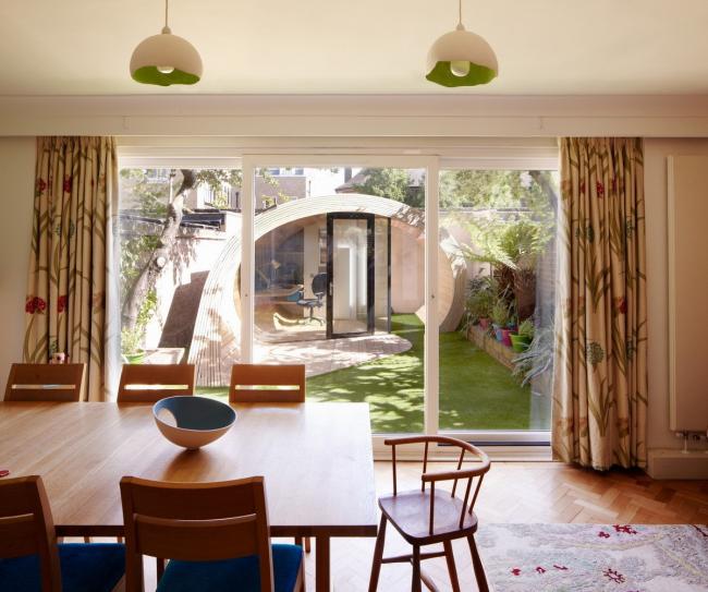 “Shoffice'(棚+办公室)位于圣约翰森林一个50年代带露台住宅的后方花园储藏区域,是一个带小办公室的花园凉亭。简而言之,对shoffice的设想是流动于园林空间的雕塑。