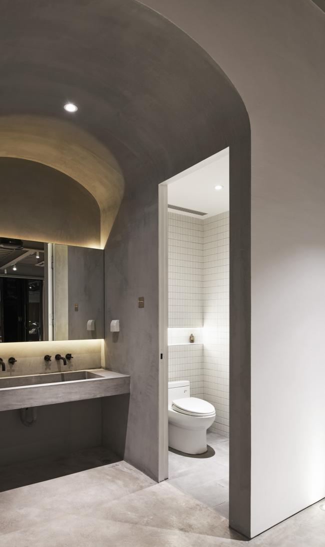 将卫生间区域处理为一个类拱形空间,以自由的形态柔化整体的空间氛围。