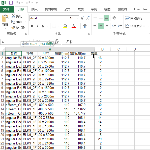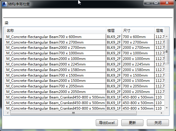 对当前视图中的梁构件进行定位及高亮显示,并导出参数列表。