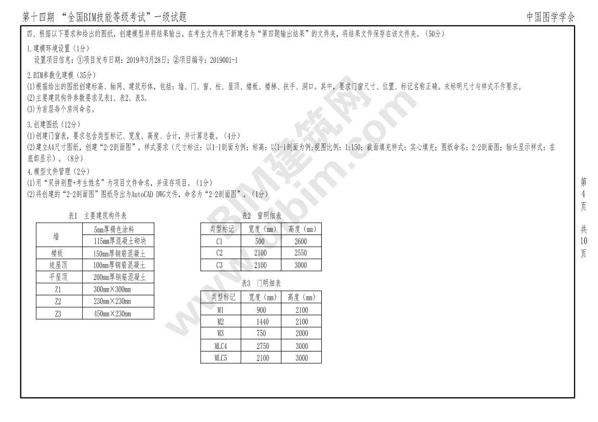 第14期全国BIM技能等级考试一级建筑(全专业)试卷真题下载