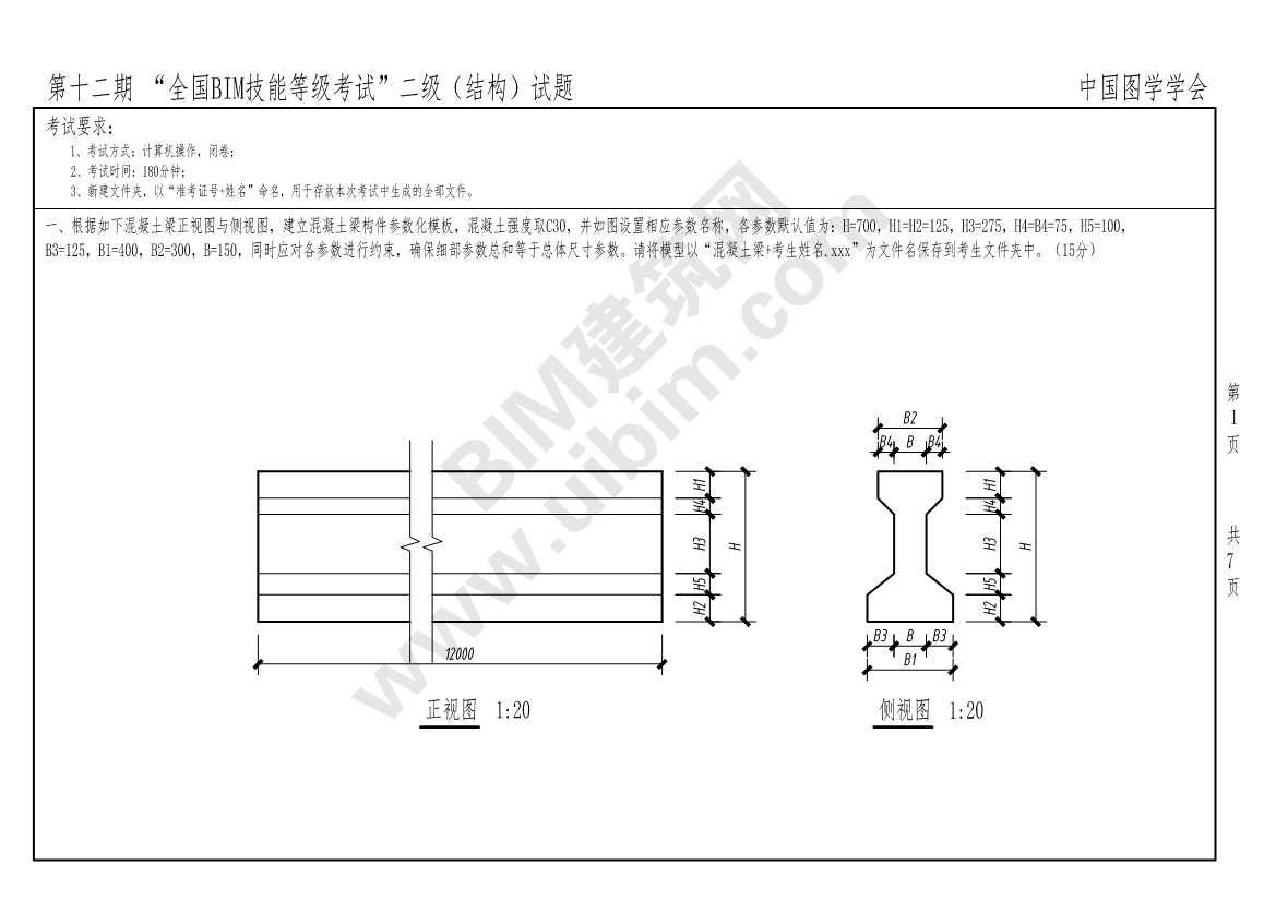 第12期全国BIM技能等级考试二级结构专业试题真题下载