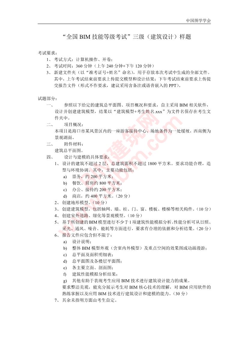 “全国BIM 技能等级考试”三级(建筑设计)样题