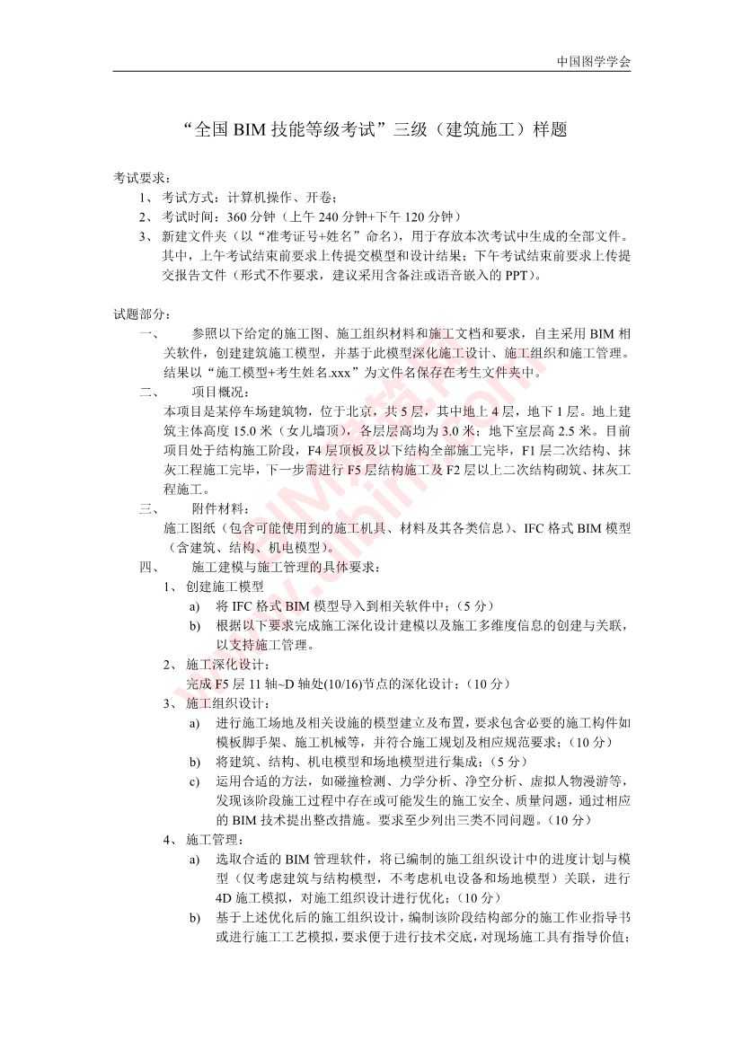 “全国BIM 技能等级考试”三级(建筑施工)样题