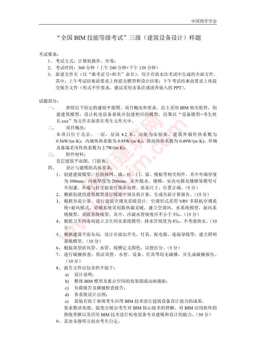 “全国BIM 技能等级考试”三级(建筑设备设计)样题