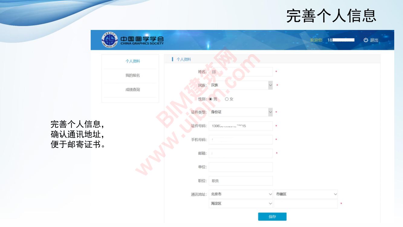 - 完善个人信息, 确认通讯地址, 便于邮寄证书。