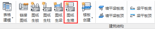 在”宝冶速建”选项卡下的”建筑结构”区域选择点击”图纸生墙”。