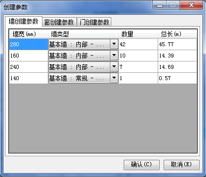 程序在读取 CAD 图纸信息后,显示识别的墙、门、窗的信息,如下图所示。