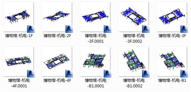 博物馆项目BIM模型全套资料(土建模型+设备模型全专业),Revit建筑专业、结构专业、暖通专业、电气专业、给排水专业全套BIM模型